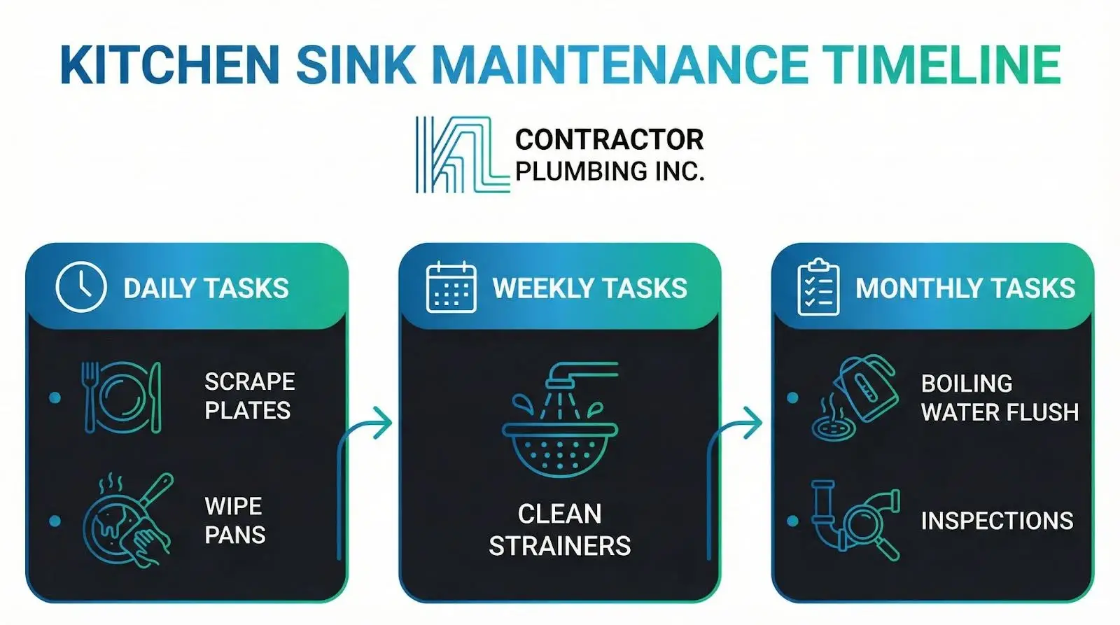 Prevention costs far less than emergency drain cleaning. These daily habits protect your kitchen plumbing:
