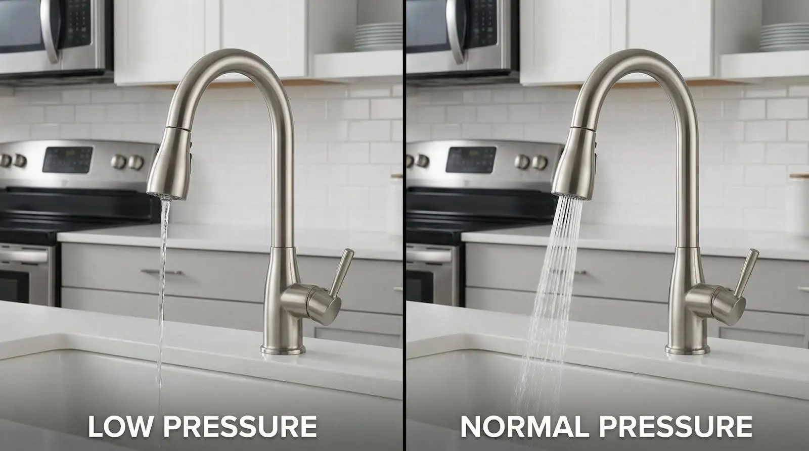 Whole-house pressure issues may stem from problems at the main line connection or pressure regulator failure. Single-fixture problems typically point to clogged aerators or localized pipe issues.