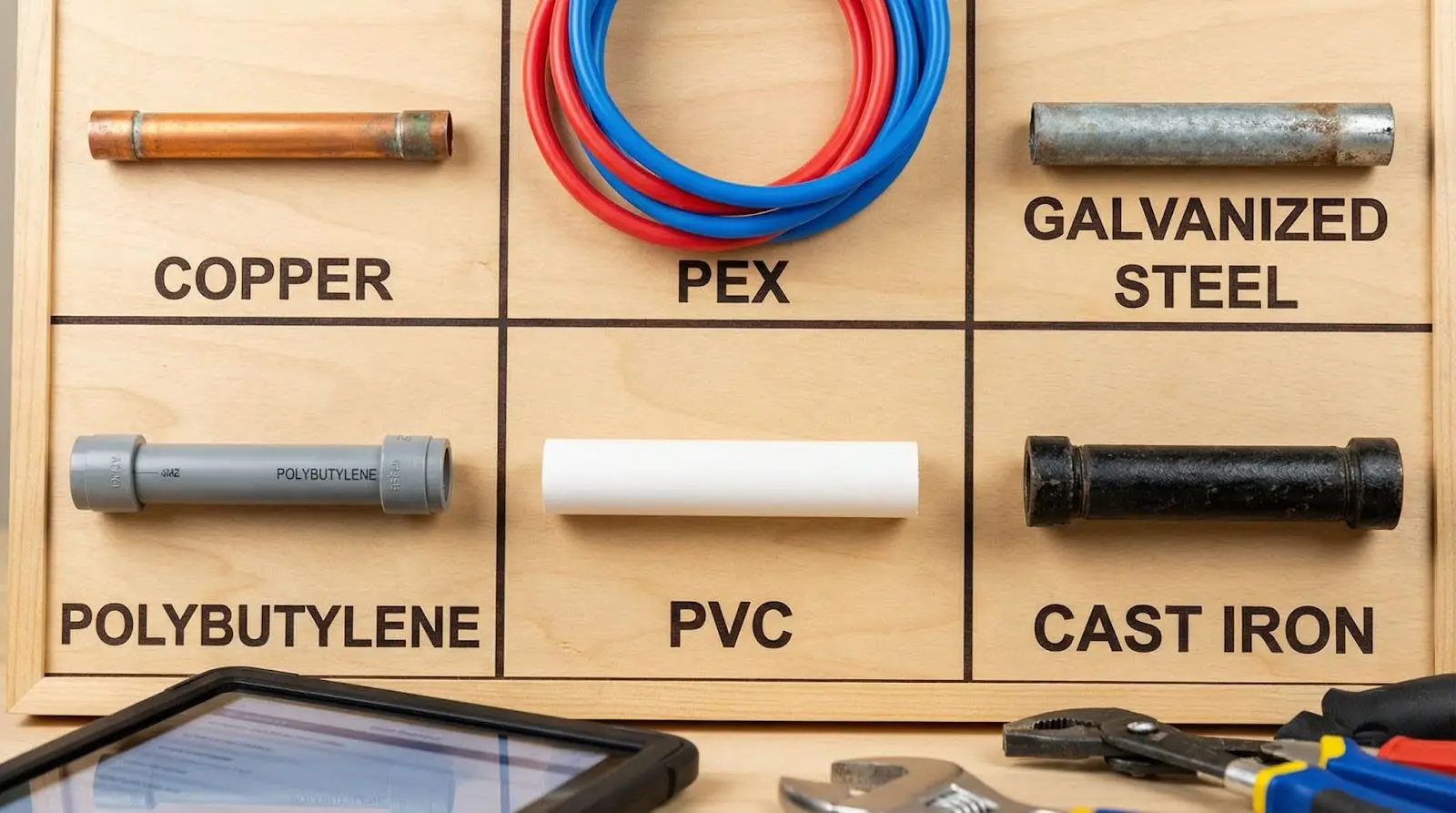 - Identify supply pipe materials (copper, PEX, galvanized, polybutylene)