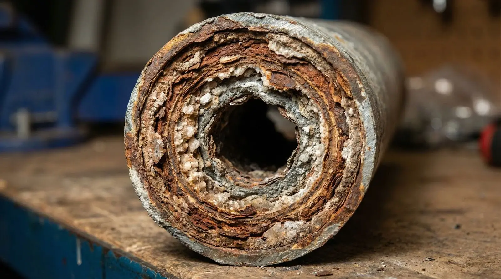Corrosion is an electrochemical process where pipe materials react with water and dissolved substances. Over time, this reaction breaks down the pipe interior, releasing metals and particles directly into your water supply.