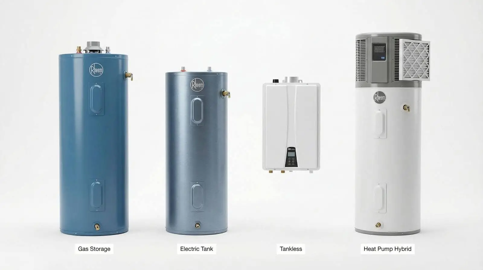 Types of Rheem units you will see: